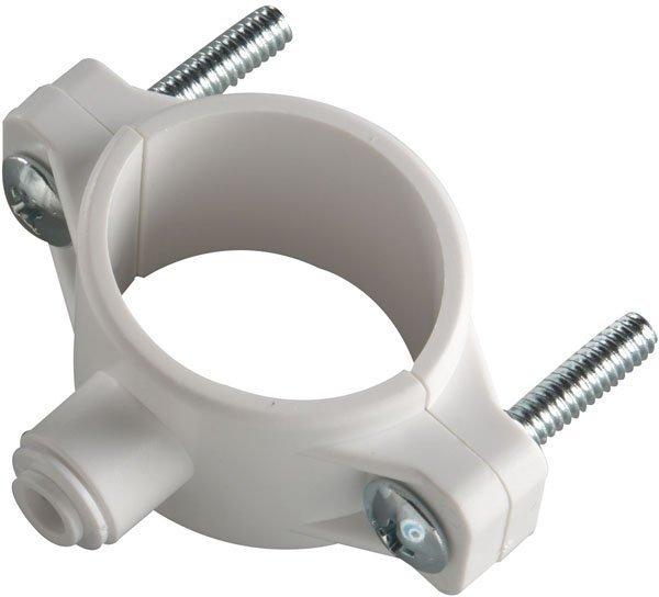 Хомут используется для фиксации и герметизации соединения труб. Диаметр хомута составляет 40 миллиметров, а размер его резьбы — 1/4 дюйма. Благодаря своей конструкции он плотно облегает трубу, создавая надёжное соединение. Это позволяет избежать утечек и сохранить герметичность системы.