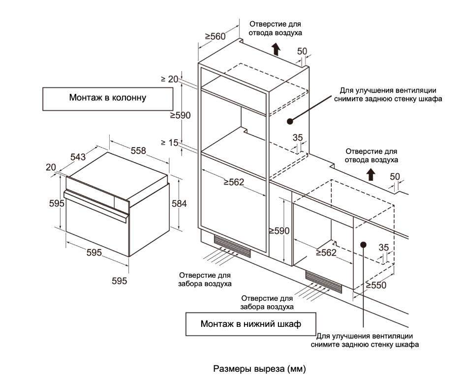 | Высота ниши для установки | 60 см |