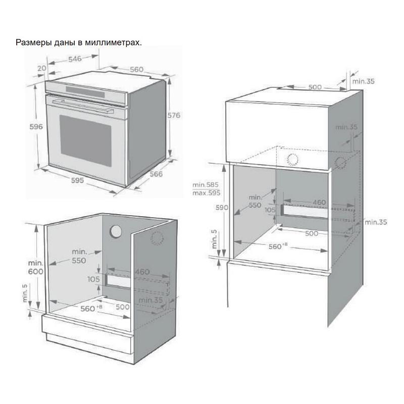 | Высота ниши для установки | 60 см |