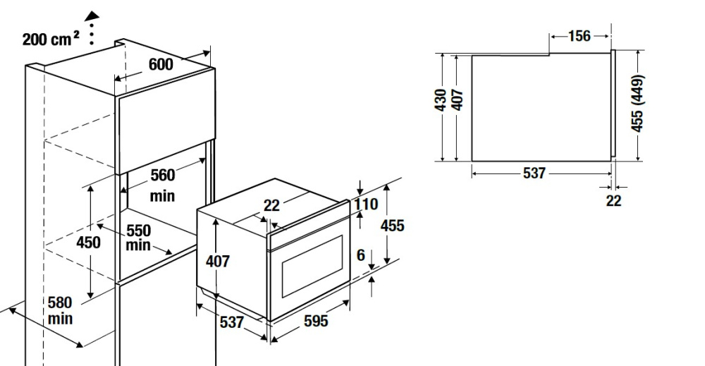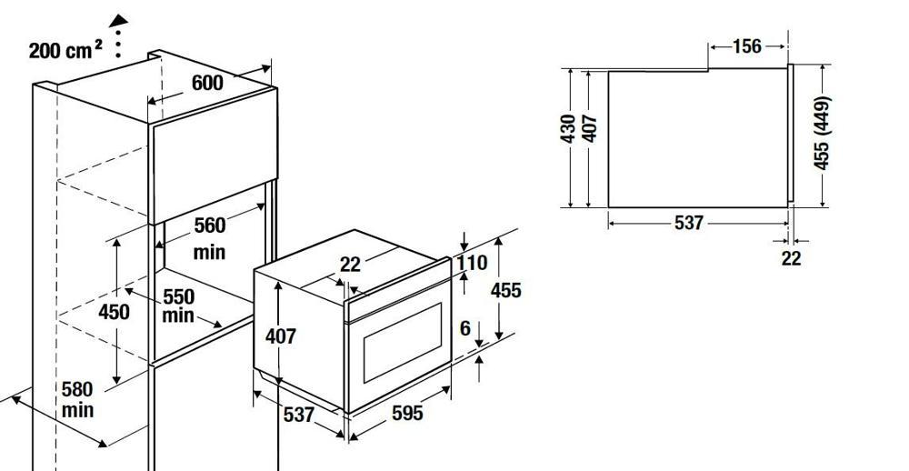| Высота ниши для установки | 45 см |