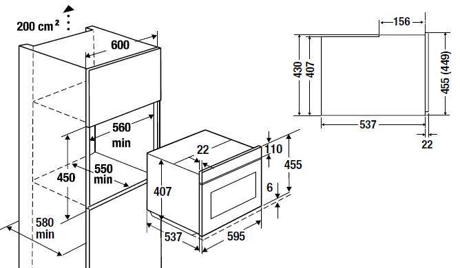| Высота ниши для установки | 45 см |