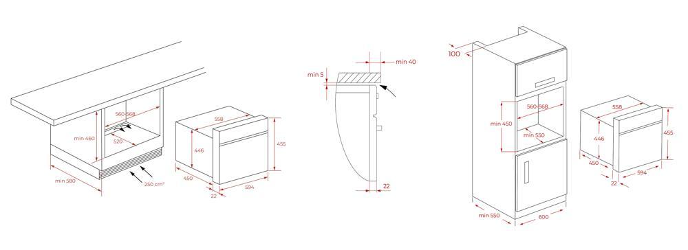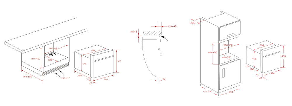 | Высота ниши для установки | 45 см |