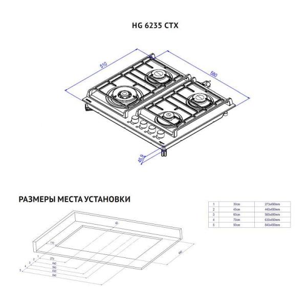 | Прибор | Газовая варочная панель |
