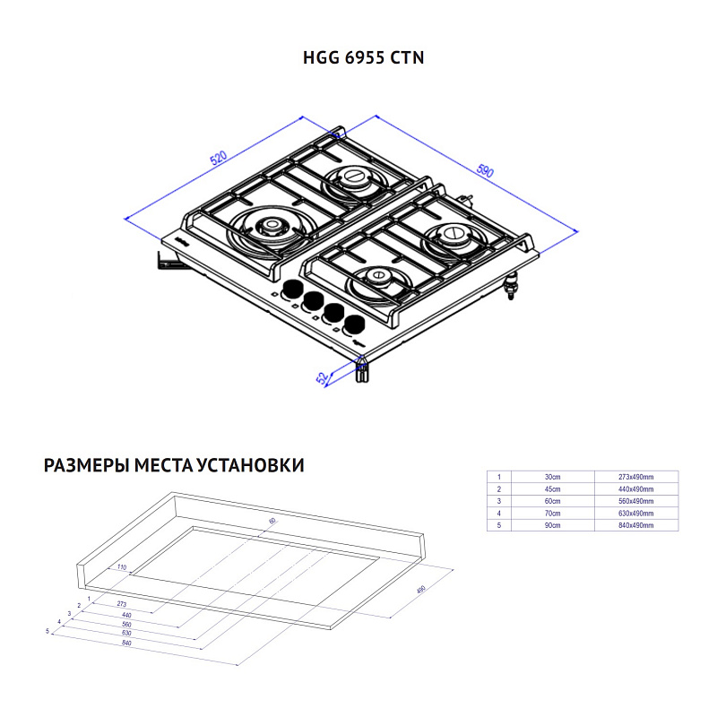 | Прибор | Газовая варочная панель |
