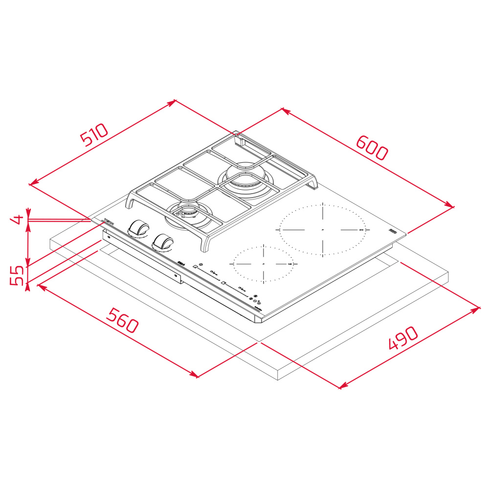 | Количество индукционных конфорок | 2 |